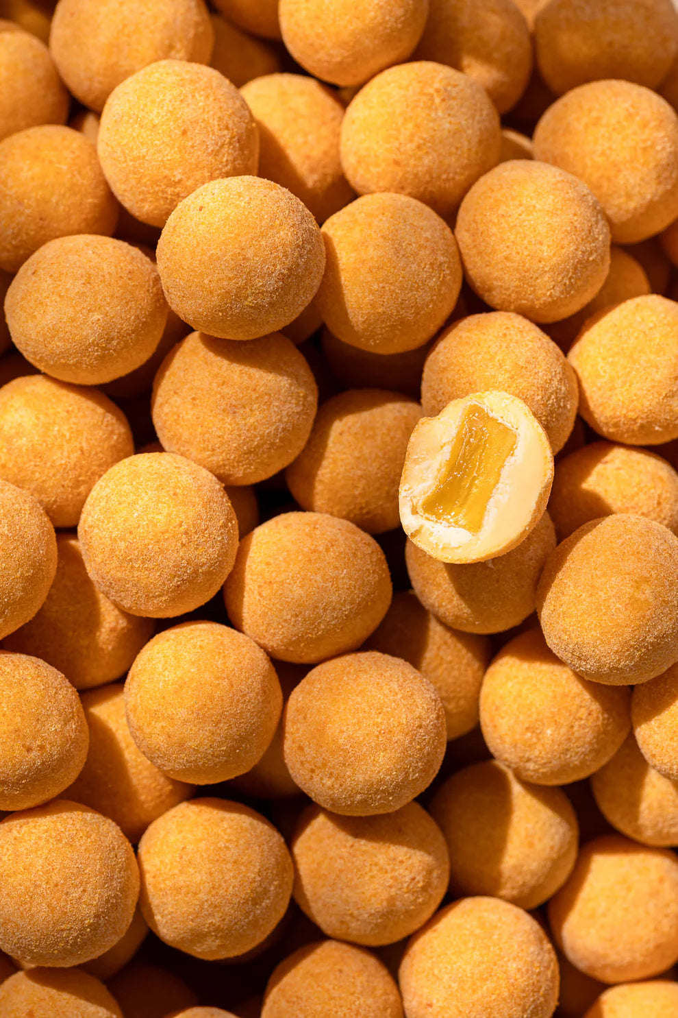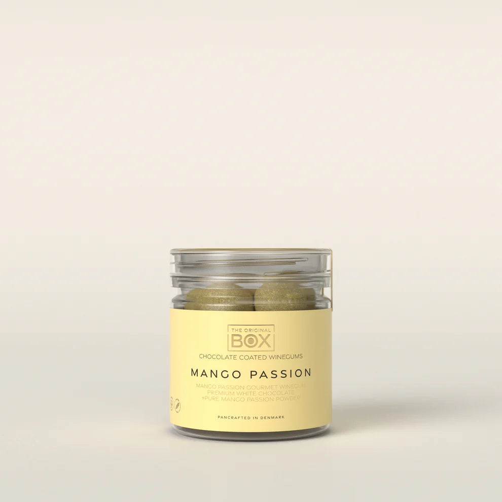 Experience heavenly taste with Box The Original's premium quality gelatin-free mango/passion fruit gummies. These tempting gummies are surrounded by premium white chocolate and rolled in mango and passion fruit powder, adding an extra dimension of authentic fruit flavor. Without compromising on quality, these gummies are a perfect choice for chocolate lovers. Indulge yourself with our 100% gelatin-free delicacies, created with taste and ethical awareness in mind.